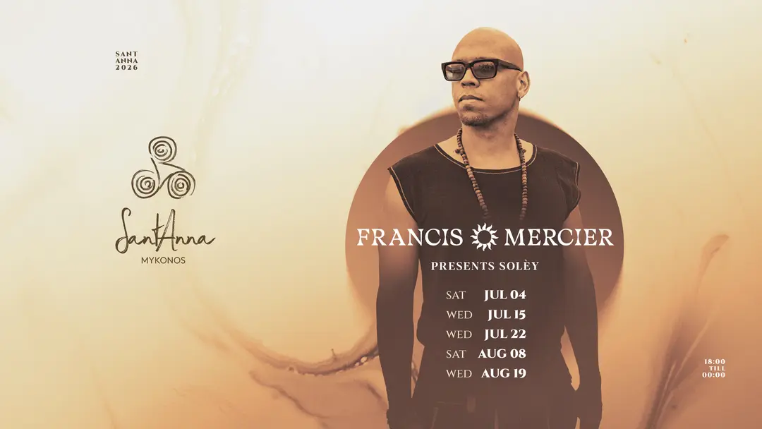 A Sonic Ritual The sun rises at SantAnna. This summer, we invite you to an evocative realm where the sounds of the Levant, Africa, and the Caribbean collide under the Mykonian sky. Solèy—meaning “sun” in Haitian Creole—is a global community that connects cultures through joy and movement. More than a performance, each residency date is a multisensory journey. Experience a vibrant, organic house language enriched with live djembe, guitar, and choreographed dance performances, all set against the breathtaking backdrop of Paraga.