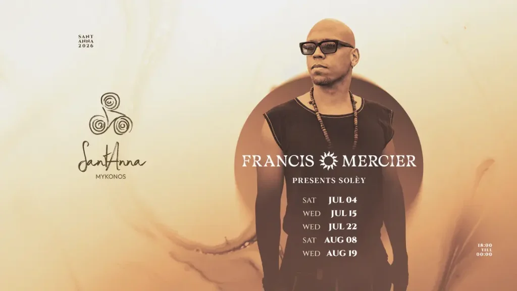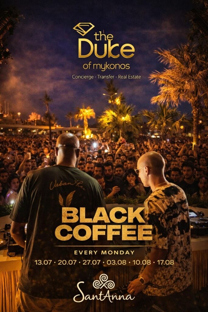 SantAnna has already made it clear that it will again be one of the defining venues of the season. Its official 2026 Events Calendar is live, and the venue currently highlights artists and 2026 event pages including Black Coffee and The Martinez Brothers. The calendar listing shows Black Coffee, Mykonos Greece 2026 for Monday, July 13, 2026, while a separate official event page confirms The Martinez Brothers for Friday, July 24, 2026 at 15:00. SantAnna also lists Marco Carola & Dennis Cruz for Wednesday, August 5, 2026.